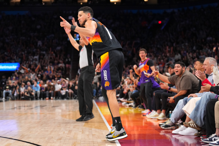 除了利拉德,现役另外5位70+得主,都是正值巅峰的年轻球员,他们分别是阿德巴约、东契奇、米切尔、布克和恩比德。其中,最年轻的是布克,他在20岁145天的时候,就砍下了70分,成为NBA历史上最年轻的70+得主。2017年3月25日,太阳对阵凯尔特人,布克出战45分钟,40投21中,三分11中4,罚球26中24,狂砍70分8篮板6助攻3抢断1盖帽,尽管太阳最终120-130惜败凯尔特人,但布克的表现依旧惊艳了整个联盟。20岁,正是很多球员刚刚进入联盟、适应节奏的年纪,而布克却用一场70+,证明了自己的天赋,也让人们看到了他的未来。