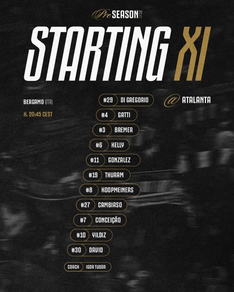 尤文热身赛先发阵容:布雷默领衔,戴维、孔塞桑、伊尔迪兹登场