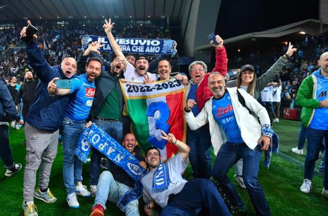 不,那不勒斯的庆祝还远没有结束,他们在马拉多纳体育场里竖起电子屏,在那不勒斯城内燃起烟花……可以预见的是,那不勒斯球迷的庆祝将持续一整年,甚至许多年。出现在乌迪内现场的球迷是一种见证,散布在全球的那不勒斯人也是另一种见证。